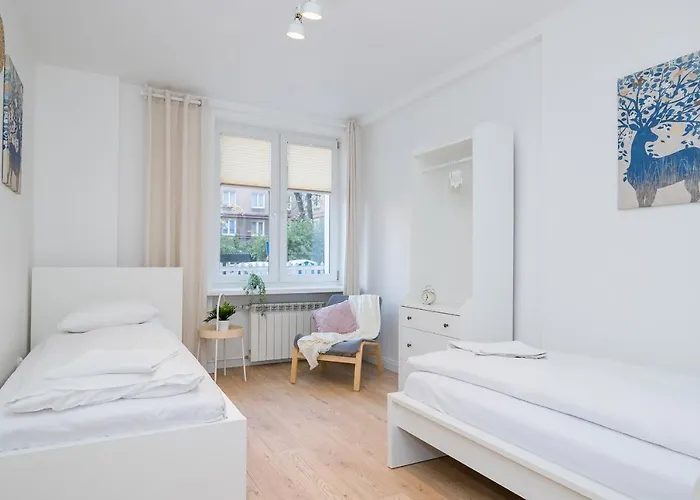Ten apartament posiada dostęp do pełnowymiarowej kuchni z piekarnikiem i zmywarką do naczyń. Apartament jest usytuowany 10 min piechotą od stacji metra Warszawa Zoo.